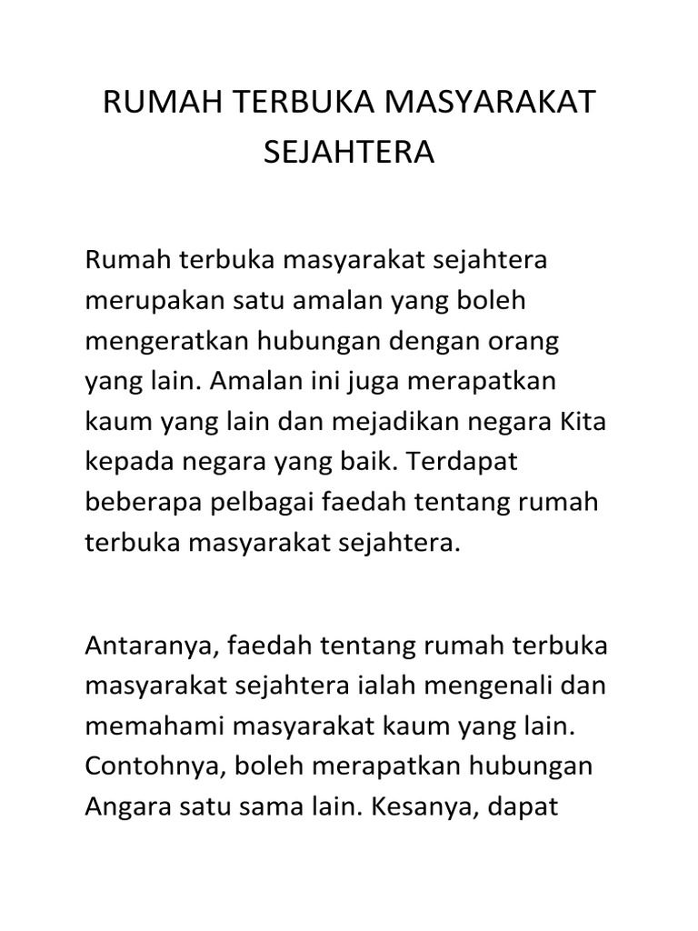Namun demikian sesuatu hakikat yang tidak boleh dikesampingkan ialah rumah terbuka dapat meningkatkan imej negara di persada dunia. Karangan SPM - Kepentingan Rumah Terbuka. Apabila tiba sahaja musim perayaan seperti Hari Raya Aidilfitri.